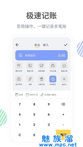 极速记账:内置丰富的标签,轻松、快速的记录您的生活流水。