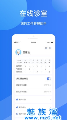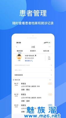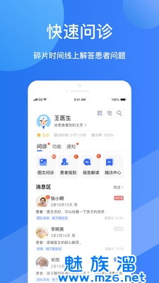 福棠医生为医生提供与患者在线咨询的平台,医生可以通过文字、图片、语音等方式与患者在线咨询,同时医生可以收藏患者、查看患者咨询历史、查看院内公告信息等,医生可设置常用语、疾病标签,并对患者进行标记,方便管理和记忆