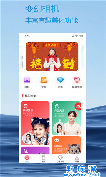火星相机是一个摄像美图相机,这是一个美颜拍照专用软件,平台上有丰富的p图工具,其中有海量贴纸,让你的图片散发高光美丽,更厉害的是可以一键变老,穿越时空遇见未来的你,丰富多彩的滤镜效果让你的生活更加新颖多彩,还可以一键换装,寻找生活适合你的不同风格,多种功能任你选择,下载体验吧。