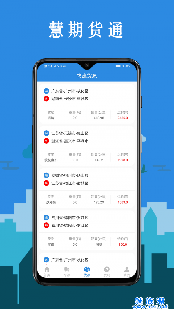 3、货源信息清楚的展示在首页里,在线能够清楚的查看