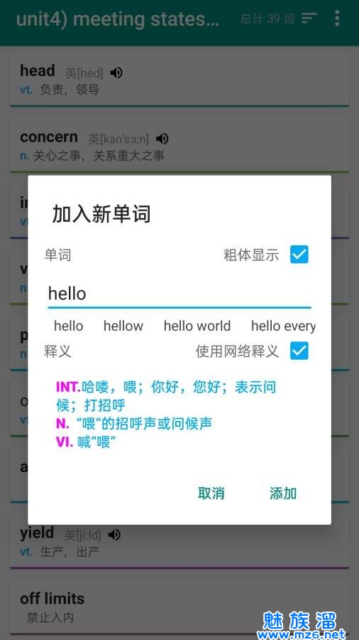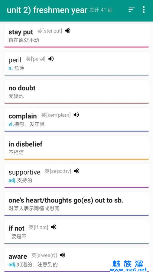 2、每一个单词的释义以及发音都有详细的介绍,也能帮助考生们来备考英语四六级;