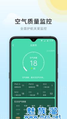 4、空气质量实时查询,PM2.5一目了然,从容面对雾霾污染。