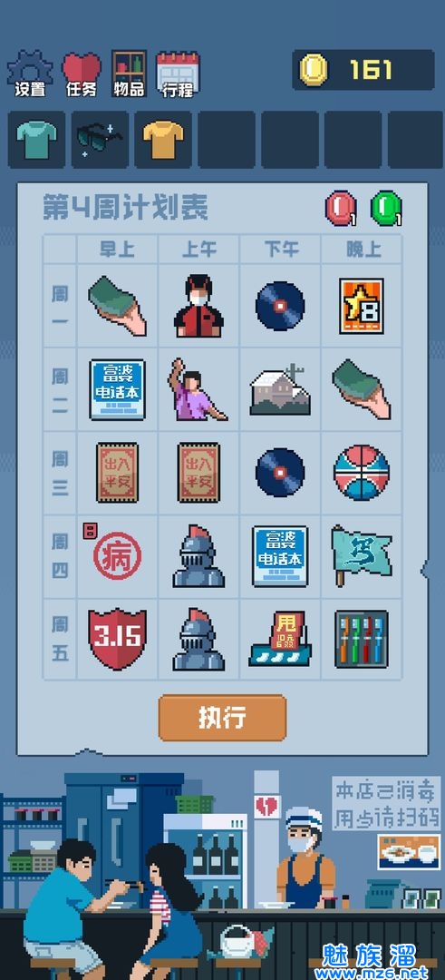 虽然有点小激动,不过社会阅历丰富的你也一定看穿了事情不会这么简单——每周的计划是从积攒的日程库中随机抽取排列的,而各种日程之间又会产生或好或坏的影响。所以玩家在搜集新日程的时候就要仔细斟酌一番了,确保你收集的各个日程互相之间能保持收益最大化才能获得最后的胜利哦!