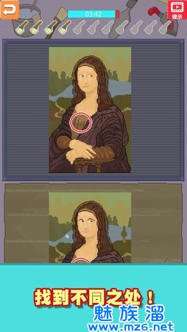 1、很简单的操作。玩家只需要仔细观察每一幅画,就能找到不同的地方,合理还原。