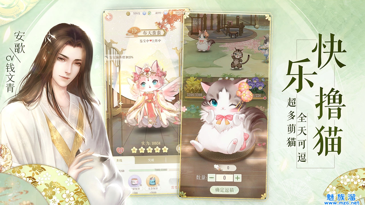 灵猫传最新版是一款乙女向的角色扮演剧情类游戏,玩家在游戏中将扮演一位少女,在经营一家撸猫店的同时,我们将与多名角色展开相遇的故事,游戏中的角色各自有各自的特点,有的可能是富甲一方的王爷,也有的可能是独孤一派的少主,玩家将与这些角色深入的交流,了解他们身后的故事,并且每个角色都由知名CV配音,感兴趣的小伙伴快来下载吧!