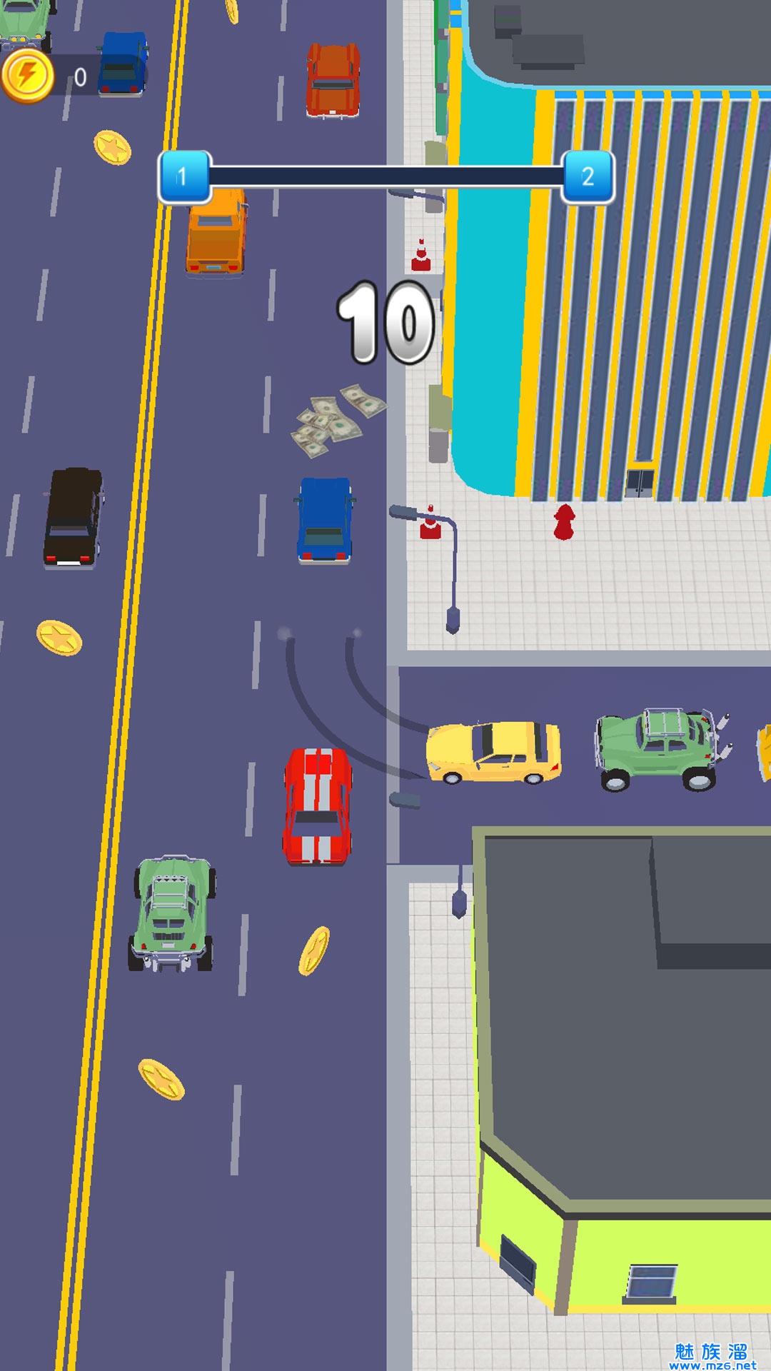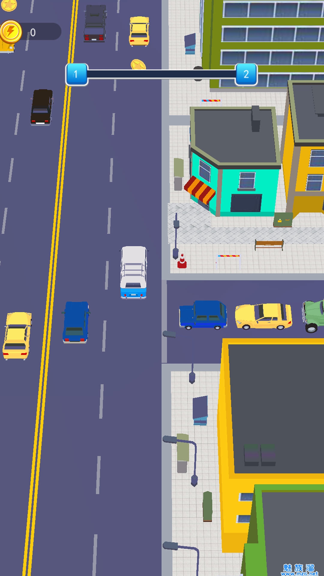 3、仔细观察行车道上的车辆速度,不同的关卡车速不同,留给你指挥车辆的时间也不同。