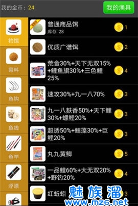 3、有许多不同类型的渔具可供体验。操作简单,易于使用。