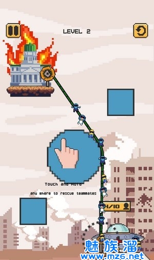 1、绳索像素大师的内容原理是很简单的,你要设法连接绳子来救出被困的小人。