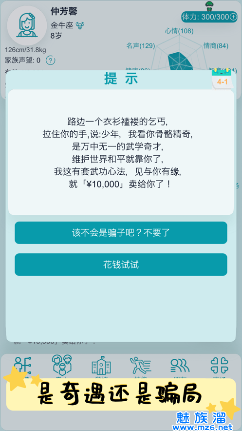 4、通过加属性点等来影响事件的触发,谱写自己的人生剧情内容;
