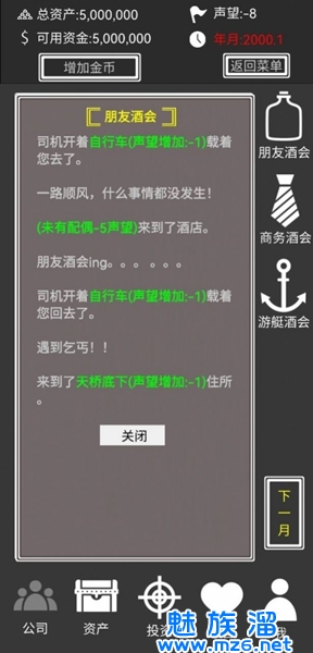 赚它个一亿最新版是一款有趣的文字模拟游戏,在这个游戏中,有着简洁的画面,游戏中有着各种各样的随机事件触发,随着你的选择不同,造成的结局也是不同,你将从一个小白成长到赚取一个亿的小目标,题材新颖,玩法简单易上手,感兴趣的小伙伴快来下载赚它个一亿最新版体验一下吧。