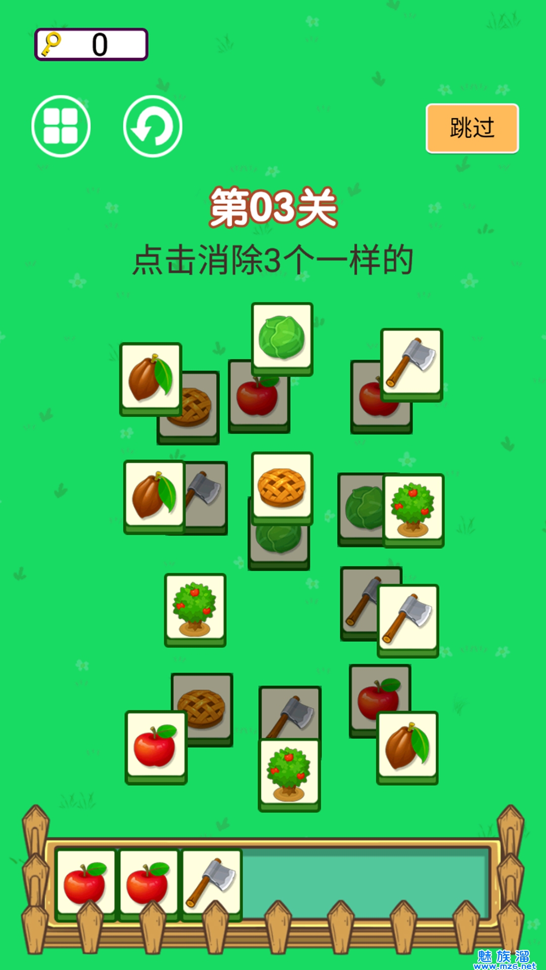 是一款非常有趣的消除类型手游,这款游戏中你需要将所有的方块进行三消,游戏下面会有一个长槽只有7个,你将三个相同的移至下方完成消除,刚开始很简单,后面的难度会慢慢增大哦。