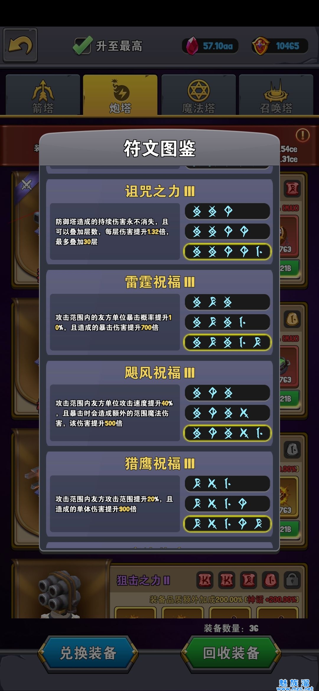 然后是箭塔炮塔和魔法塔,这三塔找到一个有百连击的一个塔做主攻配致命袭击,别的两个塔距离短的配对应的鼓舞,还有一个配雷霆祝福。