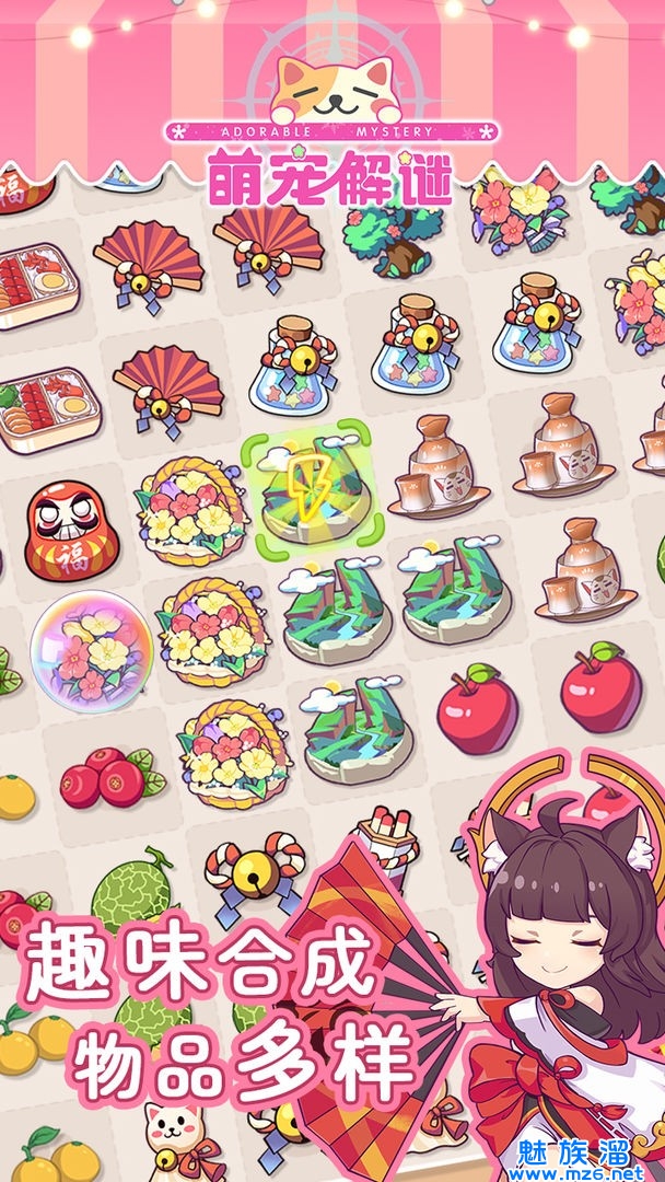 本游戏是一款画风清新可爱的合成冒险养成游戏。游戏背景是在恶魔出没的祈灵大陆,神主召唤守护神们一同守护大陆的安宁。玩家将扮演神主大人,通过合成玩法收集道具,解锁神灵们一起探索未知的大陆,解决各种千奇百怪的奇幻事件。