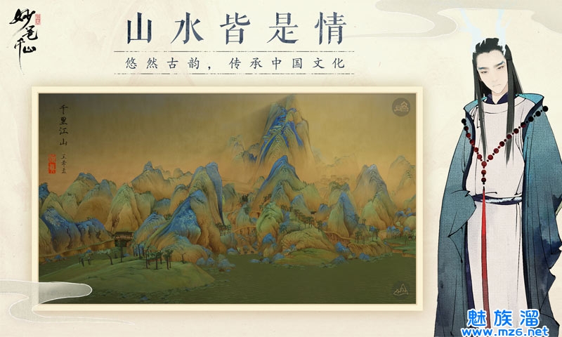 《绘真妙笔千山》是网易游戏和故宫博物院共同打造的一款青绿山水互动叙事手游,游戏以传世名画《千里江山图》为蓝本,完美还原中国传统绘画瑰宝,青绿山水的意境和效果,淋漓尽致地营造出如入画镜的体验。隽永的画风,神秘的故事,多样的角色,动人的音乐,您将与两个主人公一起,展开一段奇妙的青绿山水探索之旅。
