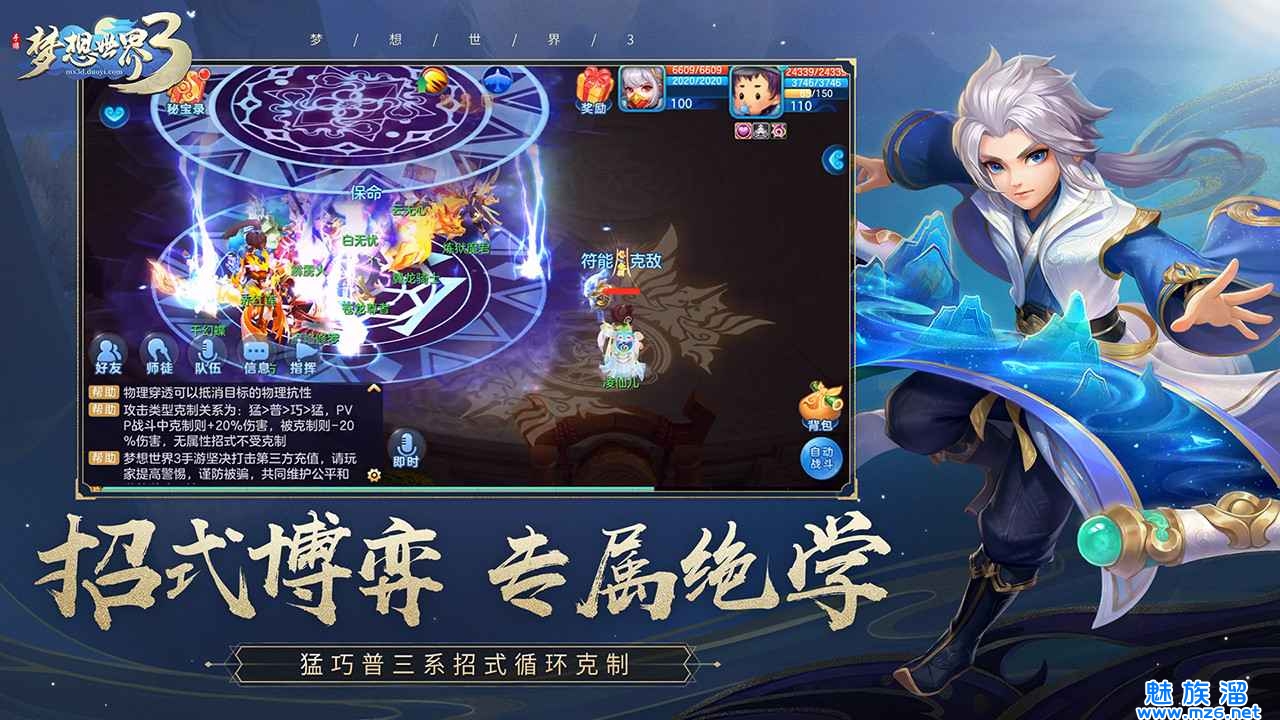 《梦想世界3》——传承“梦想世界”15年经典系列,独创策略回合战斗体系,猛巧普三系招式循环克制,成功预判打出最完美的技能效果;精心设计的招式动作,拳拳到肉的技能打击感,带你领略不一样的魅力;轻松易做的日常任务,随时随地抽出些许闲暇时间即可完成;每晚都有的周常活动,寻找合适的战友与你一起战圣灵、闯梦境,还有丰富的PVP活动等你来体验;丰富多样的社交玩法,为你打破交流壁垒,轻松结识各路好友,遇上挚爱共建家园,享受真实梦想人生!
