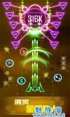 2、挑战更高的关卡是最令人兴奋的事情,控制你的飞机并摧毁所有几何宇宙飞船;
