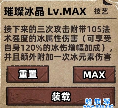 技能效果翻译:战斗时,+15点冰伤增幅、+15点火伤增幅,聊胜于无吧,但是被动嘛,学会了就永久生效,为什么不呢~