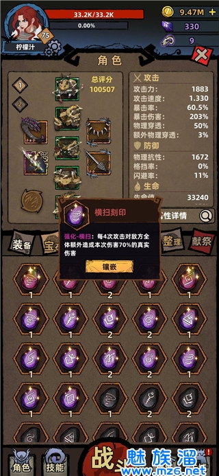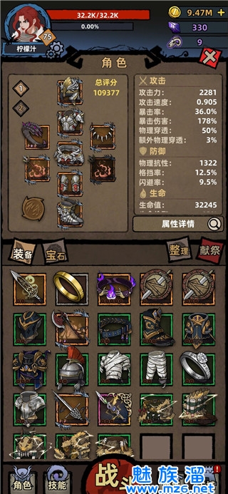 然后你就可以打到24+层了,然后就换套装,换毛刀,合宝石、铭文,然后就打造装备