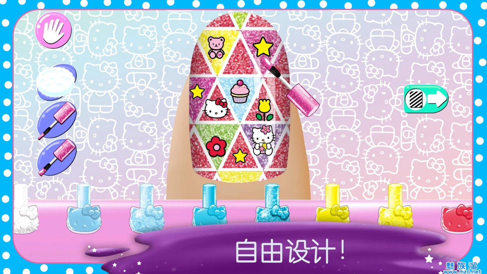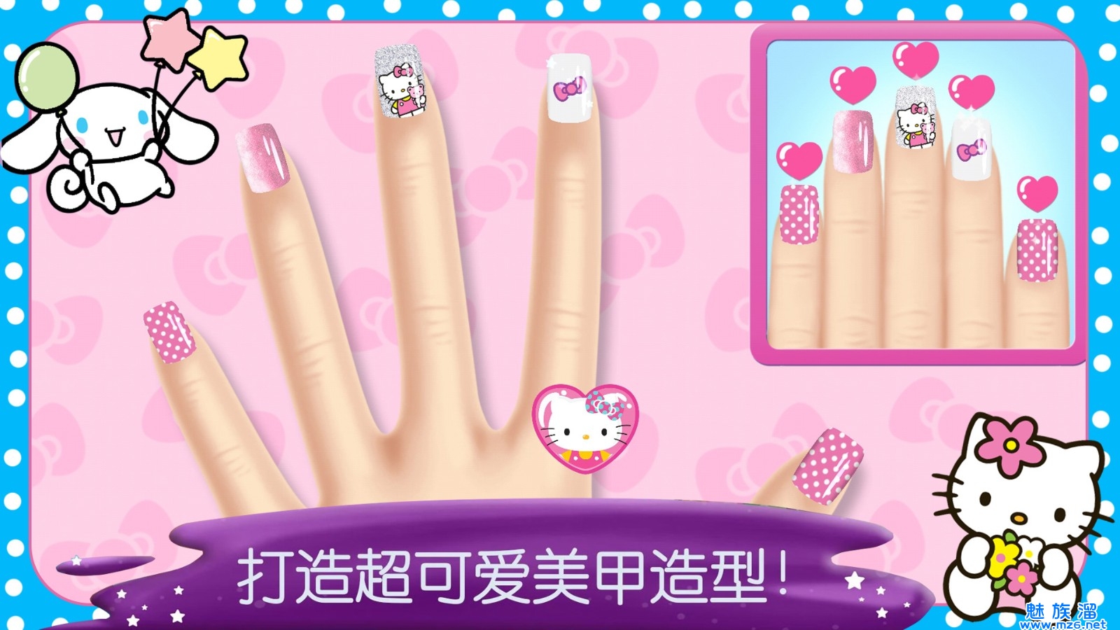 这是一款以凯蒂猫为主题的美甲游戏,