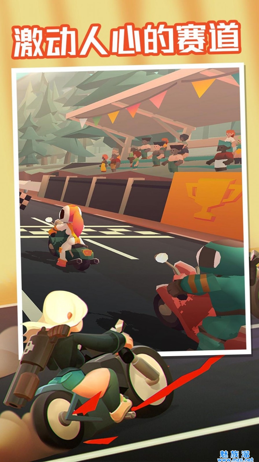 《飞跃摩托》是一款多人摩托驾驶竞技的休闲闯关手机游戏,玩家在游戏中将驾驶摩托车参与各种竞速赛场,收集金币与道具将对手击败,超越获取关卡第一,升级解锁更多游戏装备,多种游戏模式等你来参与,喜欢赛车手游的玩家欢迎点击下载试玩!