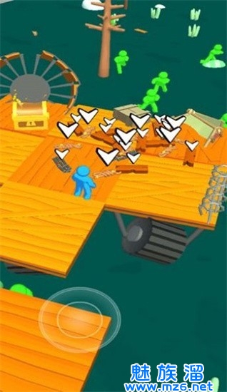 2.进入游戏后,玩家需要跳上木筏控制木板的移动,收集更多的资源,营救幸存者。