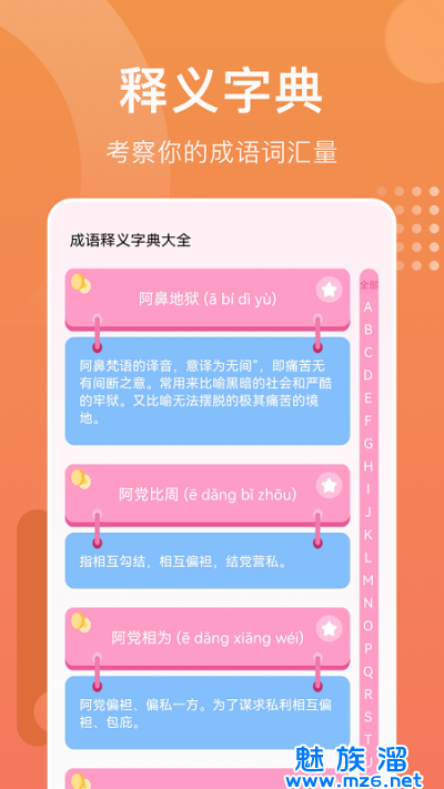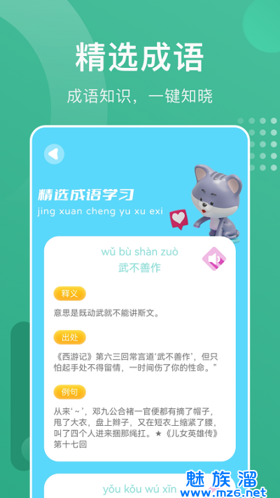2.轻松有趣,寓教于乐,巩固学习,成语问答多,每天都在玩,每天都在进步。