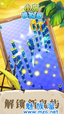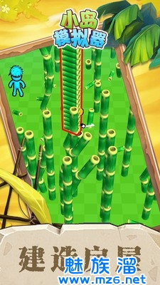 小岛模拟器一款休闲类的割草游戏,玩家通过砍伐竹子,完成每一个小岛的任务,最后用竹子造船通往下一关;每一个小岛上都有不同的小惊喜在等着你,可能是宝箱,可能是怪物,更有可能是一个伙伴,种种惊喜等着你!