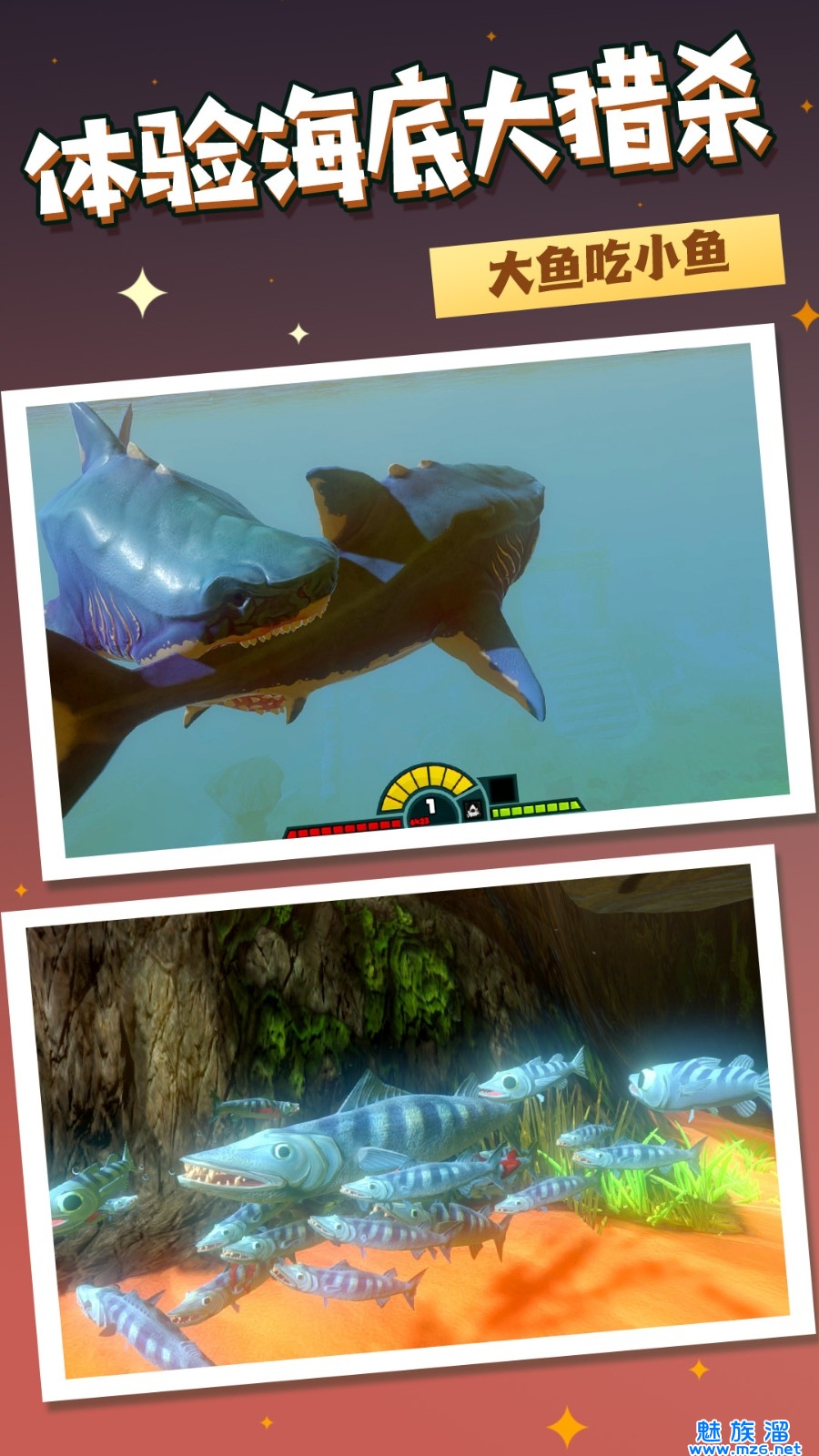 《水生动物模拟器》是一款惊险刺激的海洋冒险生存模拟的休闲养成手机游戏,玩家在游戏中控制小鱼进行搜集食物吞噬,不断提升等级进化不同大小的鱼类,躲避体积庞大的生物,努力存活到最后成为海洋霸主,操作简单解压,喜欢的小伙伴快来下载玩玩吧!