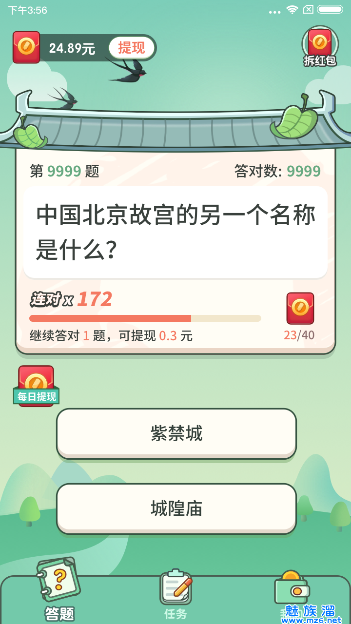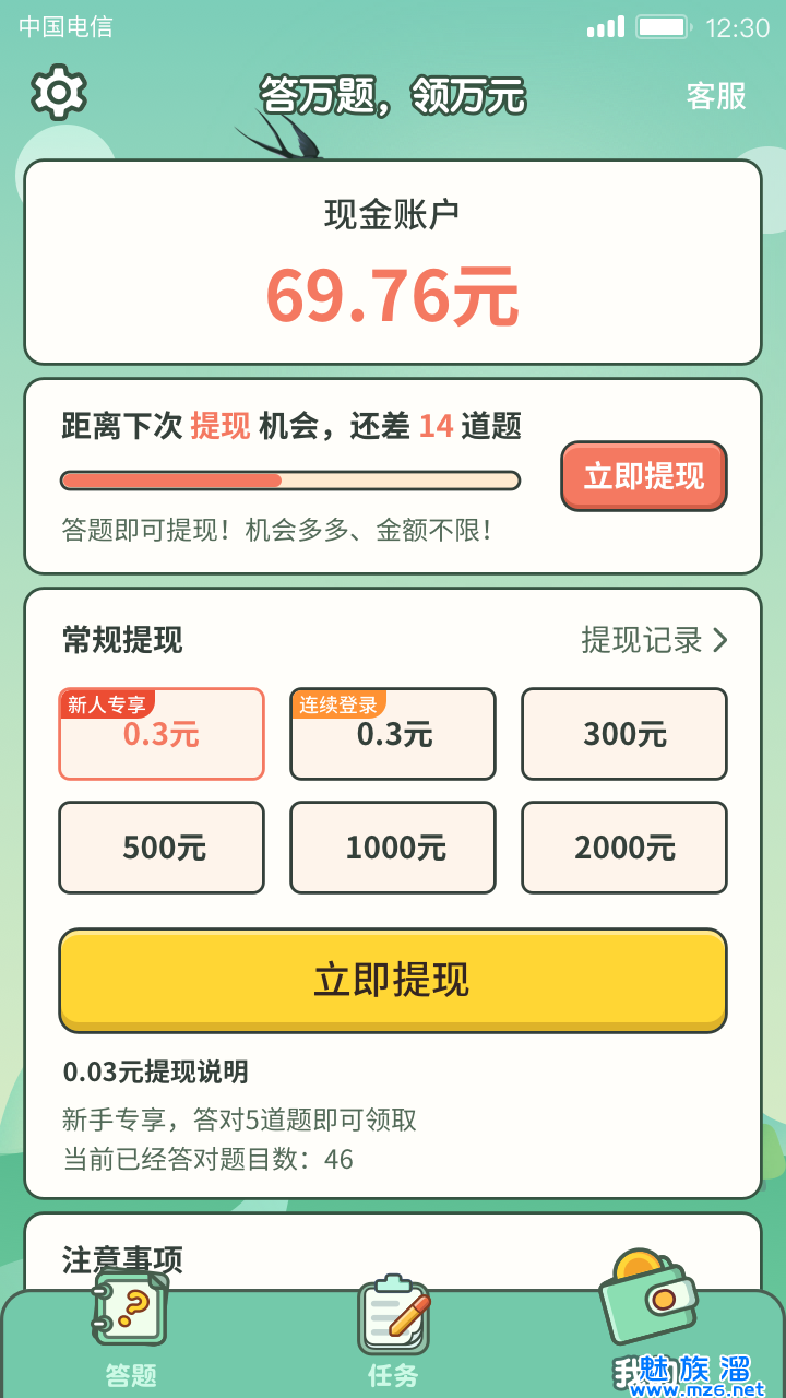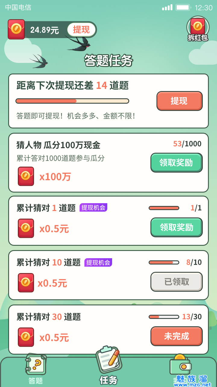 5、参与答题还有机会获得现金红包,红包的金额是不等的,你答题越多获得的奖励越丰厚。