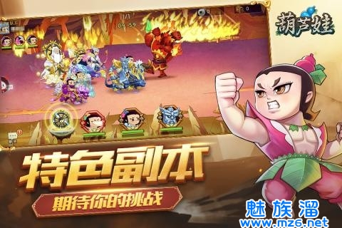 游戏挥别传统AI组队,策略搭配默契组合,与游戏好友实时互动,带领葫芦七兄弟勇闯妖巢维护正义,百余关卡等你来战。剪纸风人物角色,原版动画剧情互动,带你重温童年经典。创新的横版战斗手游玩法,双人实时联机互动,游戏不再孤单乏味。游戏为玩家准备了羁绊系统,宝库试炼,法宝系统,农场系统等多个游戏特色系统,极大丰富玩家的游戏趣味。策略搭配,技能组合,百余关卡根本停不下来。