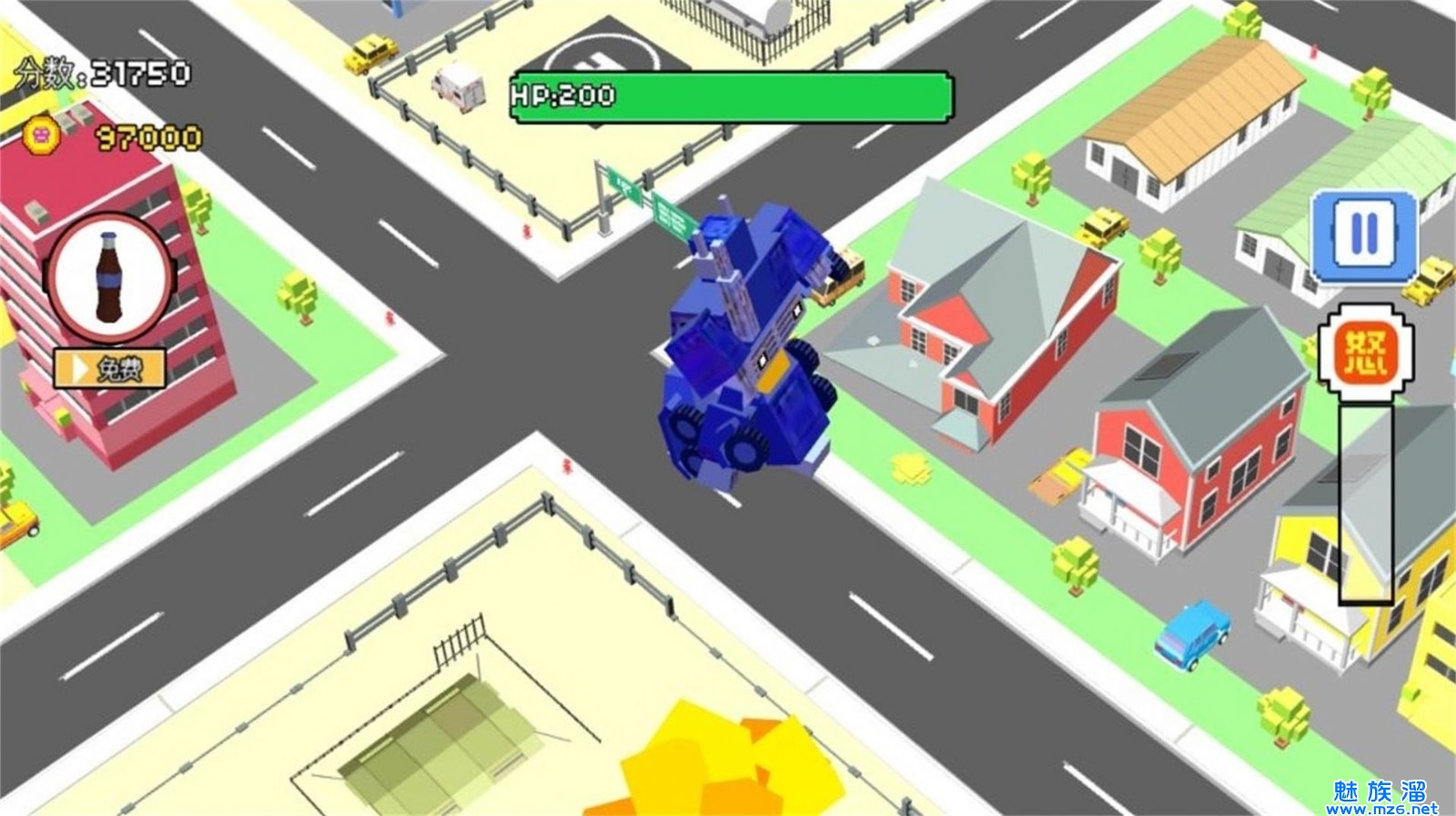 3、游戏风格很新颖,玩法种类也特别多,背景建筑物也十分多,应有尽有,需要避免角色被攻击。