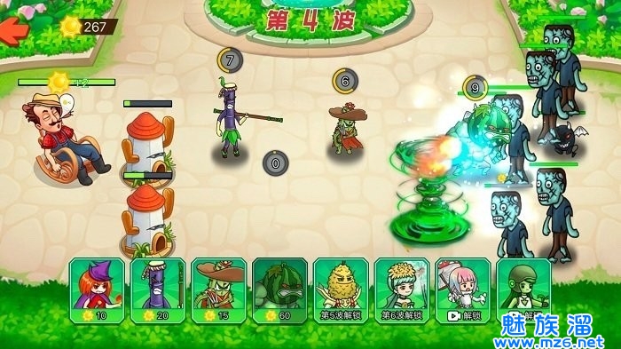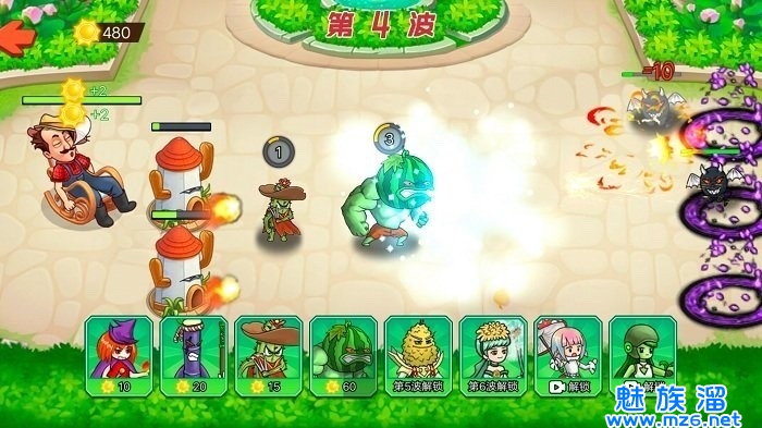 2.在这个蔬菜庄园中形成各种防御系统,能够成功抵御僵尸的攻击。
