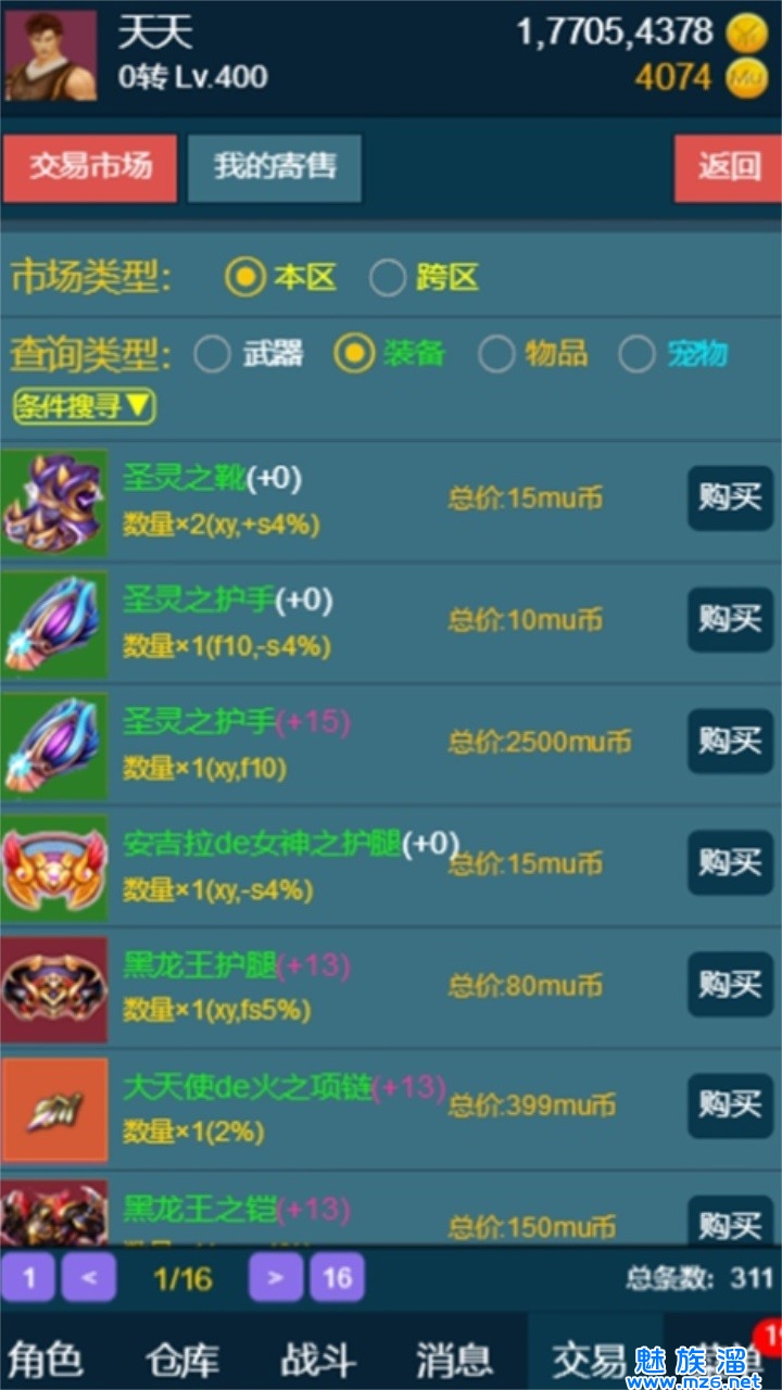 自由交易:特色的游戏交易系统,可自由交易武器,装备,物品,宠物等
