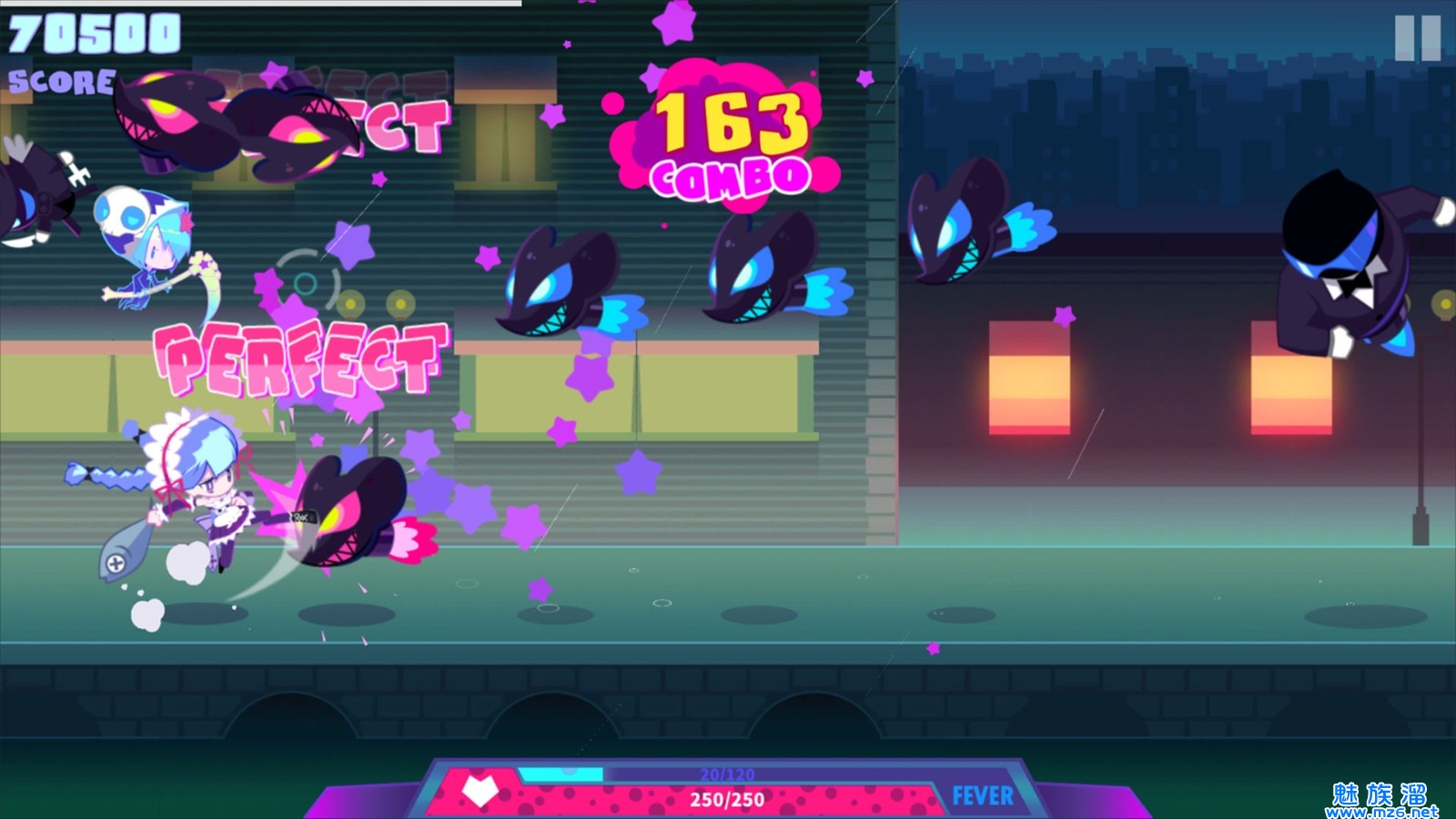 2、游戏有着精美的画面,并包含了海量曲库在内,玩家可以根据节奏的律动来击杀迎面而来的敌人,并成功的到达终点哦;