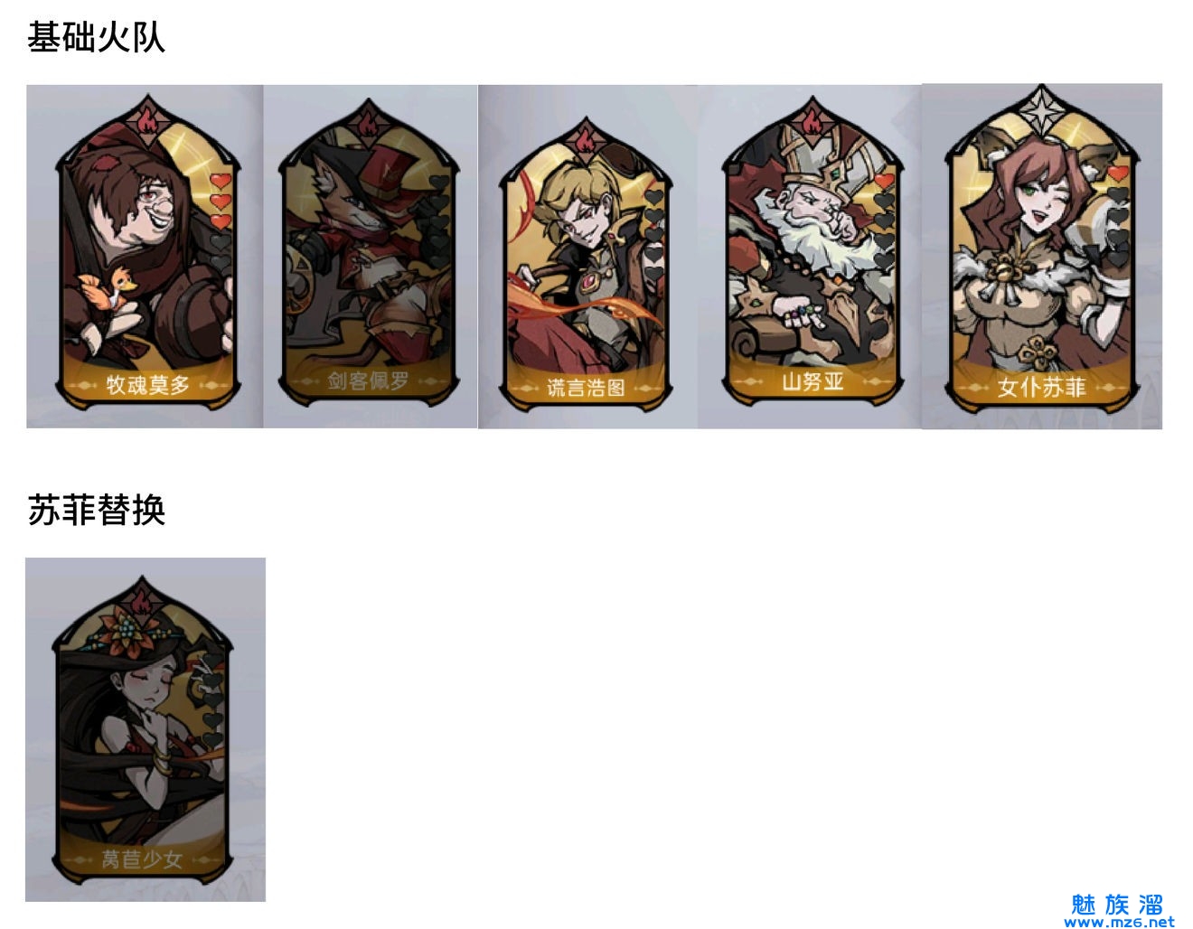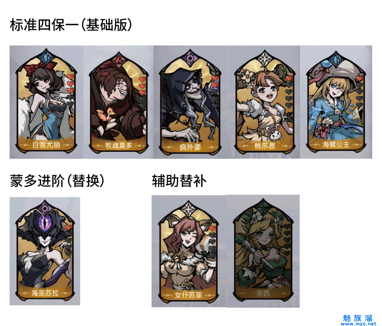 苏拉:本身坦度就很高。低星也可以当一个加攻buff挂件,后期替换摩多,其他两个英雄是替补,在你没抽到或拿到辅助英雄时临时使用
