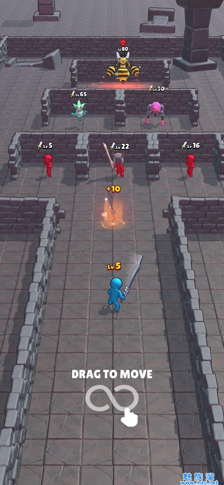 - 移动你的角色升级,获得战利品,击败怪物。