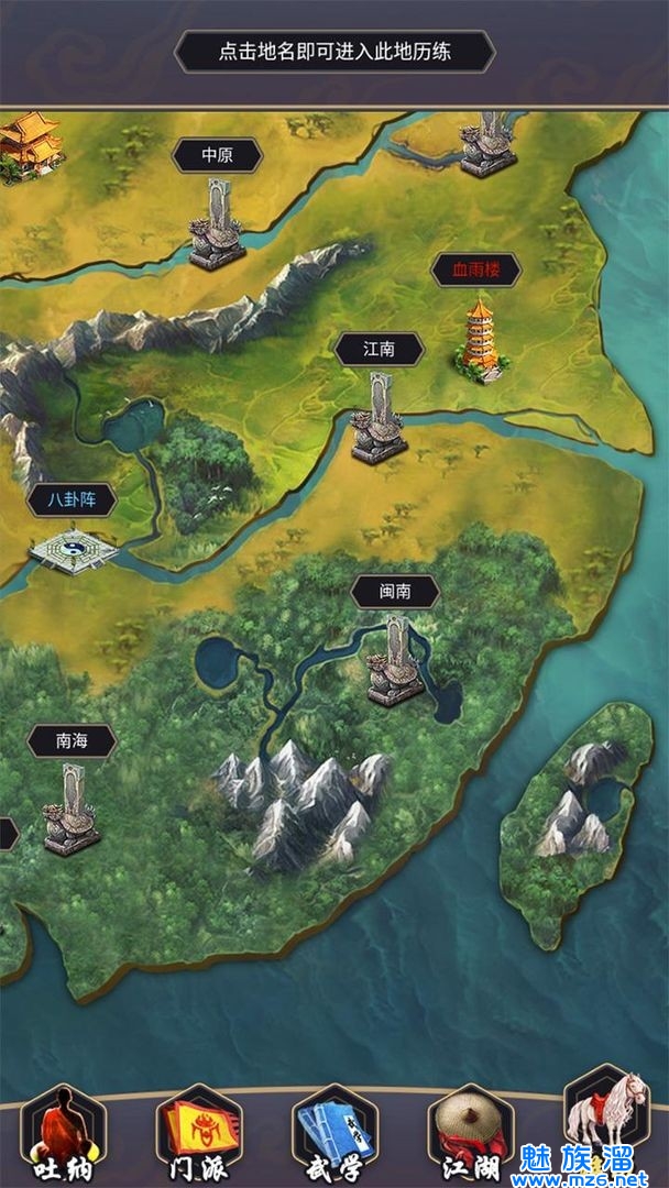 游历江湖,血雨楼,月神迷宫,真武八卦阵,唐门追魂阵任你闯;