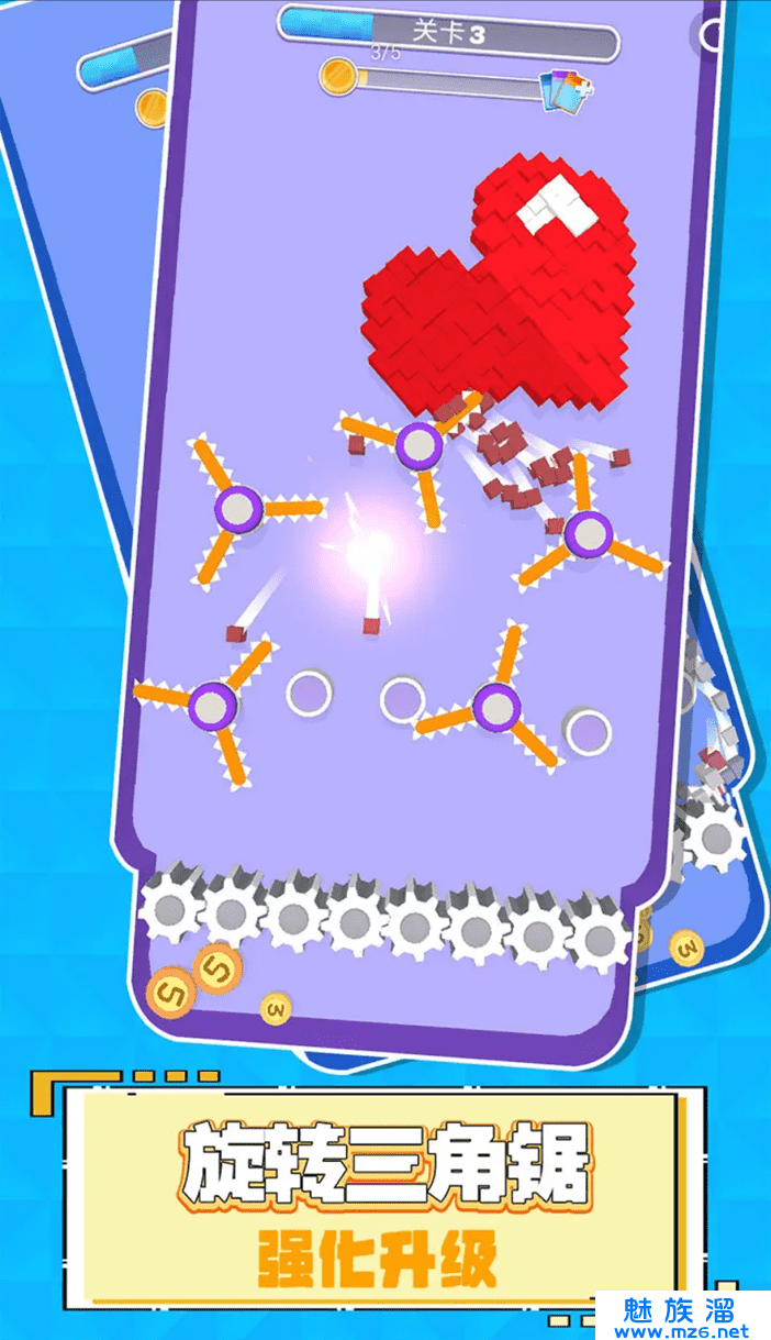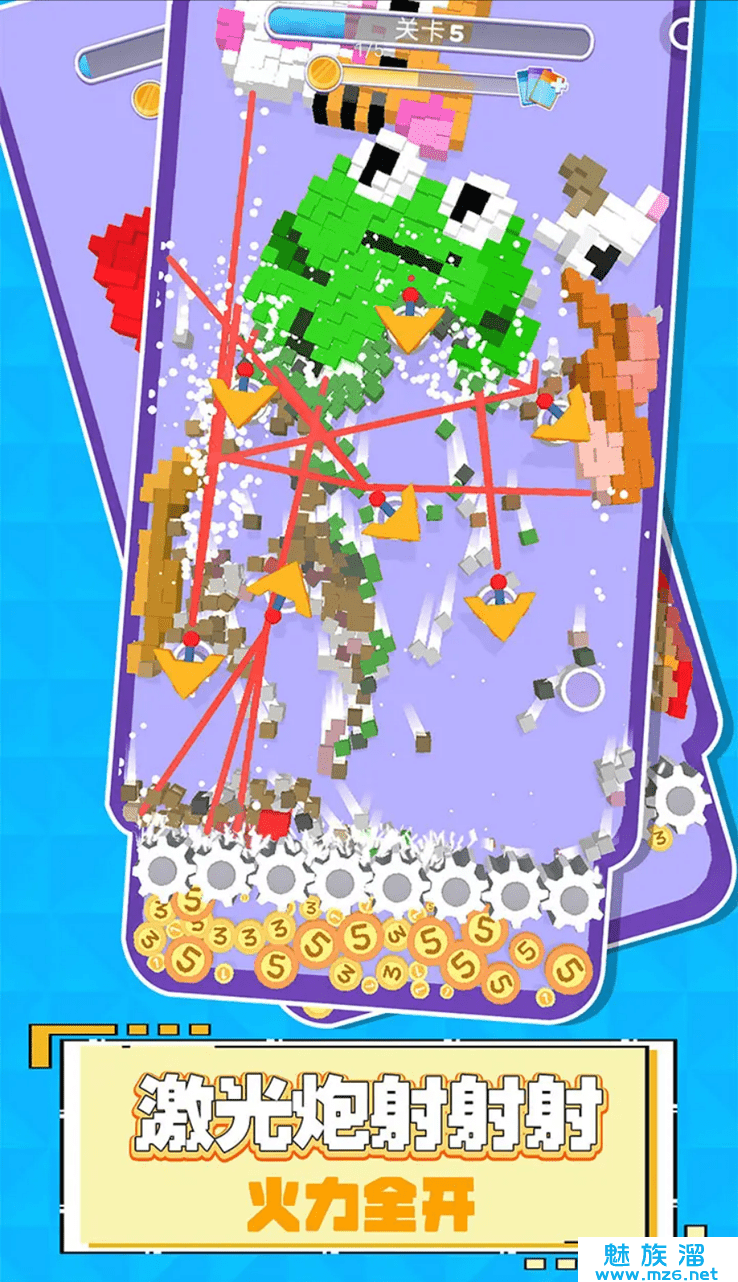 升级锋利的小齿轮,粉碎一切所有可爱Q萌的像素小方块,没有任何一块小方块能逃出你的手掌心!