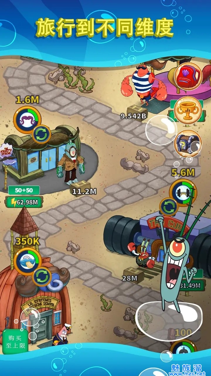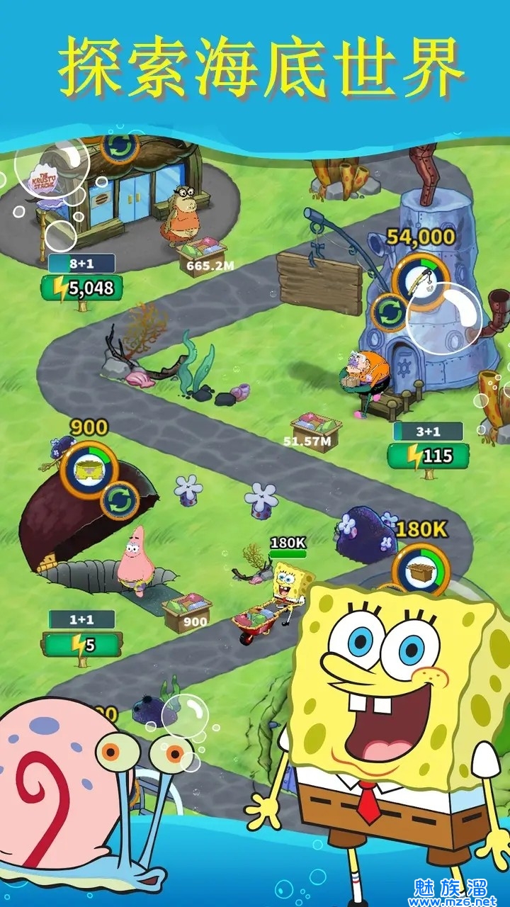 海绵宝宝题材的放置类冒险手游,游戏中可以参与比基尼海滩的建设,和其他朋友们一起进行冒险,享受悠闲的海底生活。打造属于你自己的比奇堡。趣味游戏,故事就从这里开始!一切尽在你的手指,经典角色全线来袭,随时开启游戏!