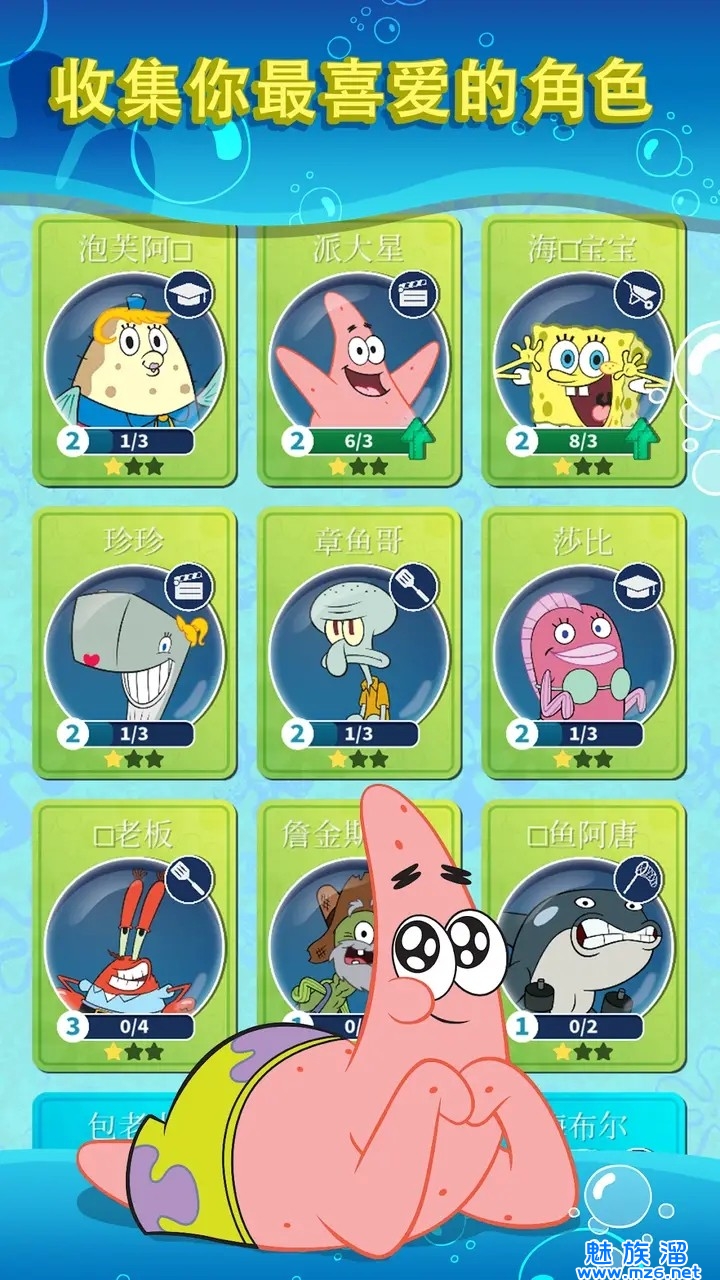 1、扮演海绵宝宝、派大星和珊迪,使用他们的独特技能组合;