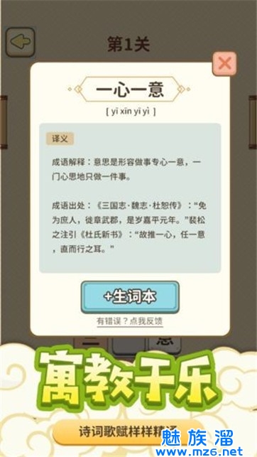 1.游戏中有很多有趣的关卡。有些汉字是随机出现的,组成成语的汉字可以一次性选择。