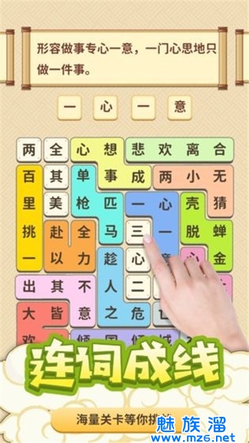 3.玩家需要根据游戏中的解释从乱码的汉字中选择正确的成语,其中有提示。