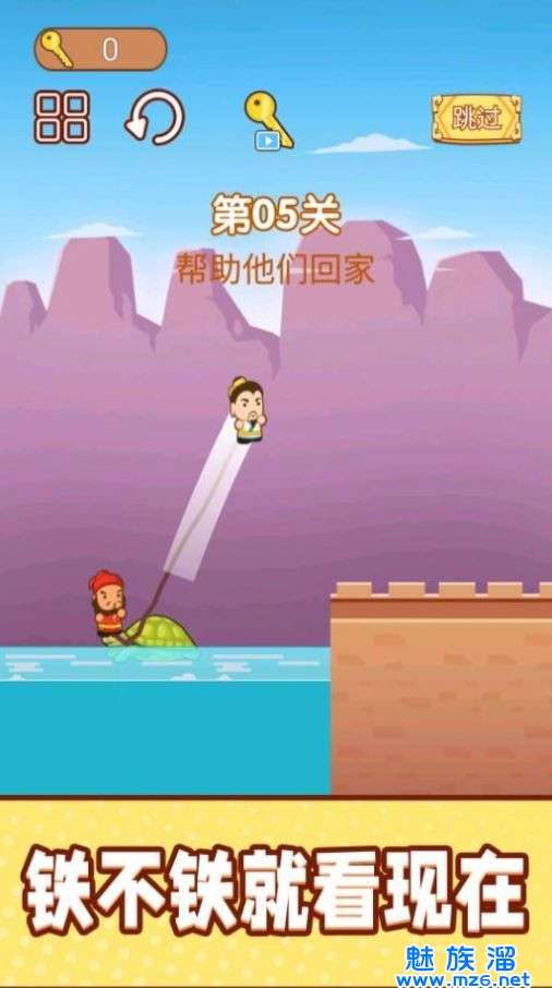 2、操控熟悉的Q版三国人物来闯关挑战吧,在游戏中需要依靠绳索来进行闯关。