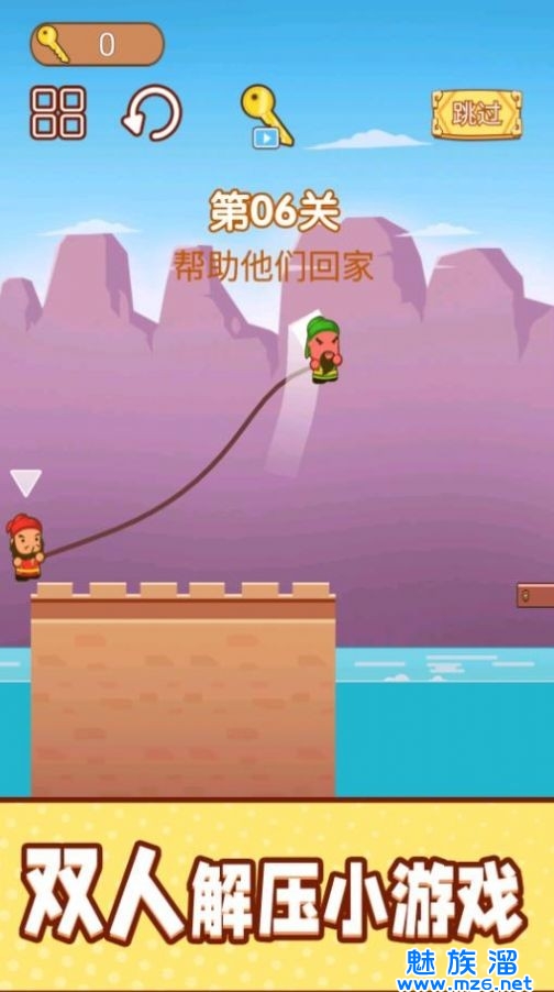 一根绳子上绑着两个人,点击屏幕就可让其中一个角色跳跃;