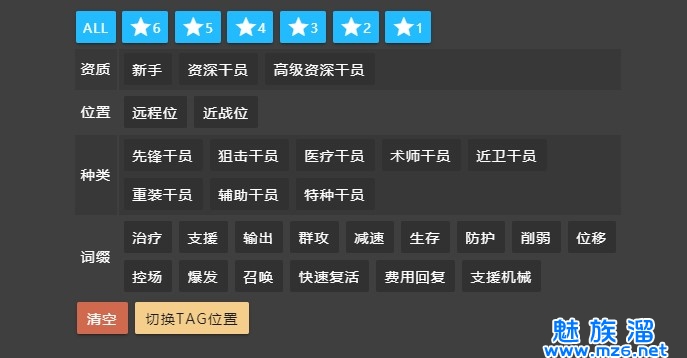 1、干员稀有度:以星星数显示,点击选择对应的稀有度即可;