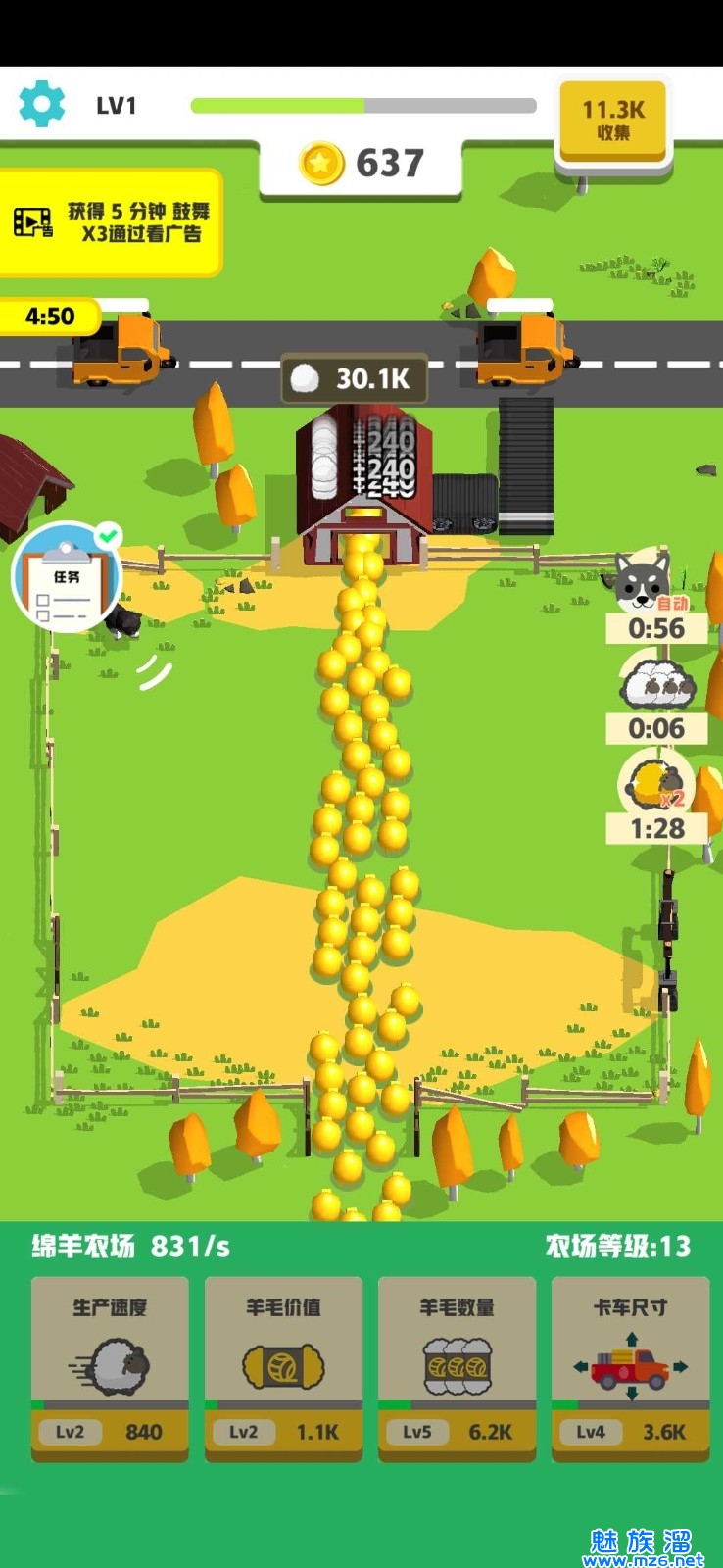 2、在游戏中,玩家还可以升级土地,使土地收益率更高。