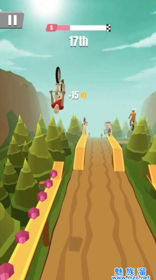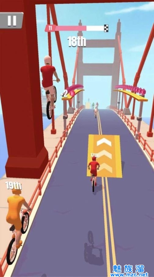 欢乐自行车游戏是一款自行车主题的竞速闯关游戏,骑着自行车不断向前冲刺,将与你比赛的对手都甩在身后,率先冲过终点线的玩家就可以成为名副其实的第一名啦,在这过程中会有非常多的弯道,把控好自行车的速度,全力以赴的朝着自己的梦想靠近,你也将收获到无穷欢乐!