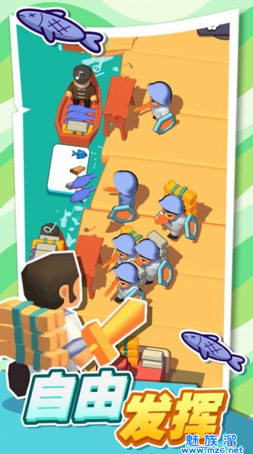 收集:抓鱼,收集木材,拉金属