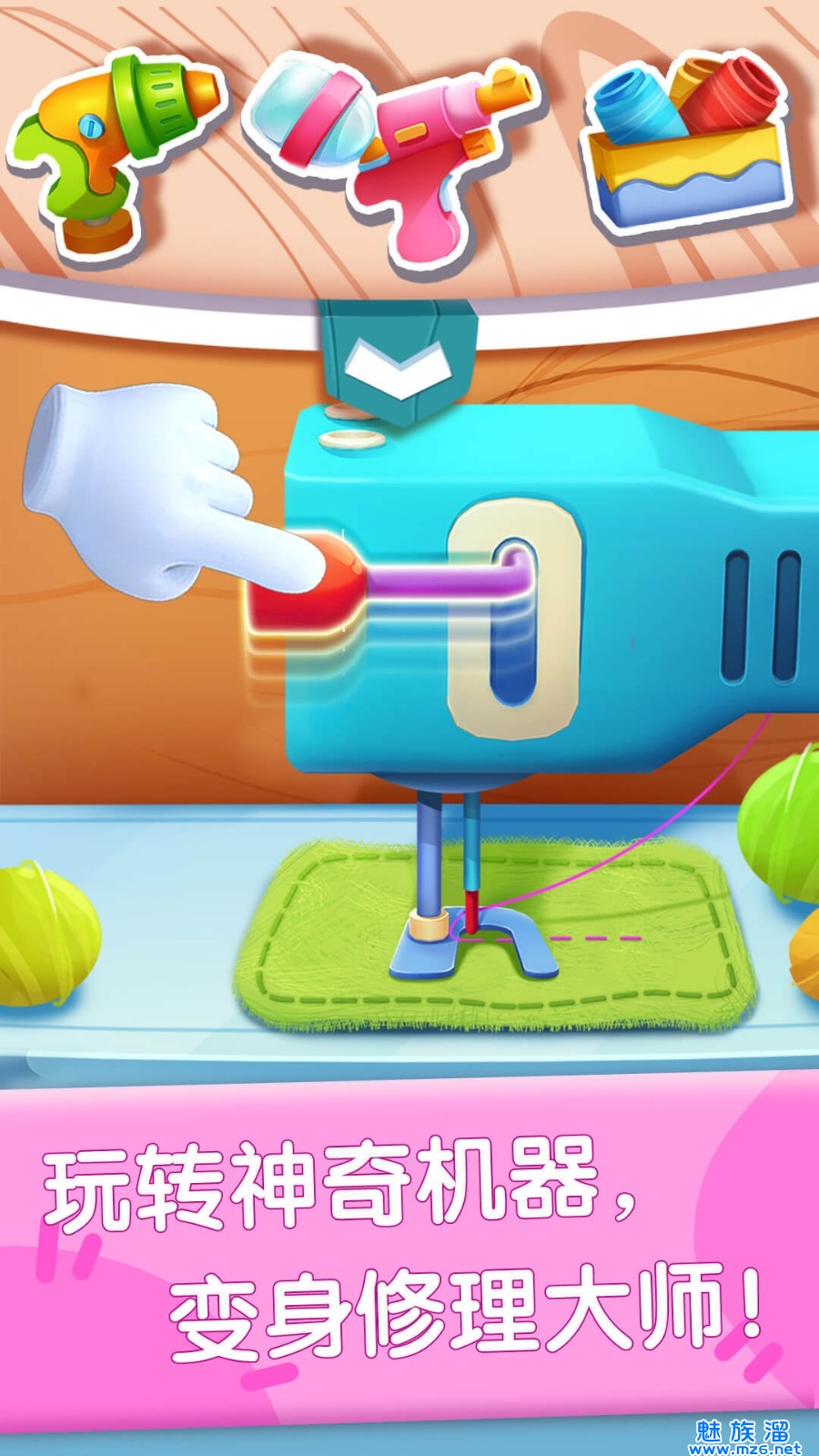 奇妙玩具修理店里,还有音乐盒、泡泡枪等20种玩具等待修理,想来试试吗?动动手变废为宝,做个爱惜玩具的乖宝宝!宝认识修理相关问题的手机应用,同时在app中宝宝还能玩模拟经营拓展思维等!