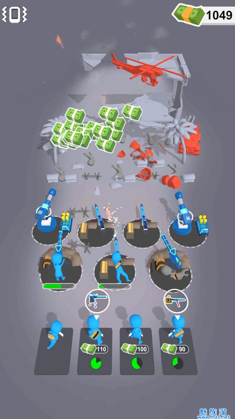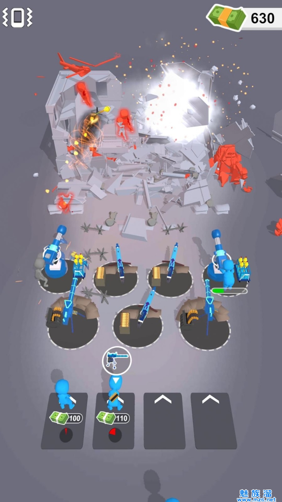2、保卫营地,休闲策略塔防小游戏,玩家作为指挥官,红蓝阵营选择。